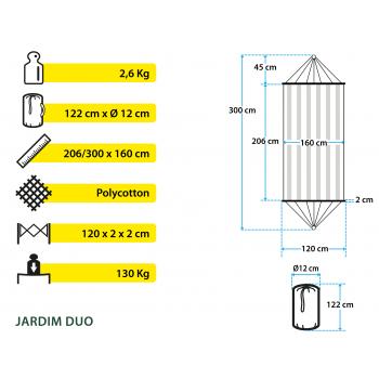 Comoda amaca in stile brasiliano con pali divaricatori in legno, versione XL matrimoniale per 2 persone, ideale per rilassarvi nelle stagioni calde con il vostro partner! Fatevi cullare dal suo dolce dondolio mentre leggete un libro, fate un riposino all'ombra di un albero o sorseggiate un bicchiere di vino davanti ad un tramonto! L'amaca Brunner Jardim Duo sarà la vostra compagna per puri momenti di relax in giardino, in terrazzo, in campeggio, in spiaggia oppure nel vostro salotto per arredare l'ambiente con stile e comfort!