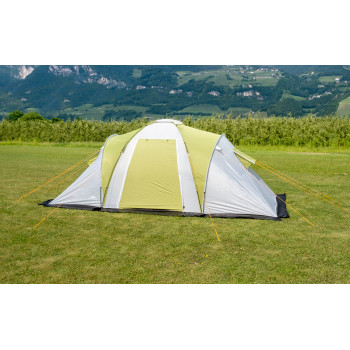 Il catino è realizzato in PE ed è amovibile mentre le camere sono realizzate in poliestere traspirante. La tenda ECHO OUTDOOR dispone di 2 accessi di cui uno è alzabile a veranda con gli appositi pali verticali compresi nella fornitura.